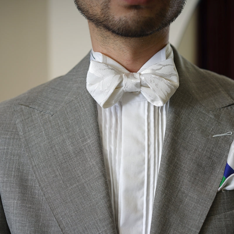 From the most traditional bow tie shape to the prototype, it is re-created and defined by the innovative method of hand-folding and shaping again. The designer has created three shapes in this series: figure eight, figure one, and letter A. The bow tie has a three-dimensional shape, and the three echo each other but are different. Each bow tie has a unique silhouette. Through the change of fabric pattern, it can be classical and elegant, humorous and interesting, or strong and public.